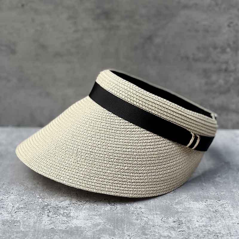 Summer Japanese Fine Straw Woven Empty Top Hat Women'S Sunscreen Visor Versatile Beach Wide Edge Casual Straw Hat