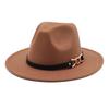 Big Brim Brown Belt British Retro Felt Hat Western Denim Woolen Tibetan Hat Jazz Hat