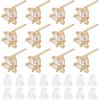 DICOSMETIC 12Pcs Flower Earrings Findings 18K Gold Plated Cubic Zirconia Stud With Loops, Rhinestone Posts, Brass Studs With Ear Nuts for DIY Jewelry