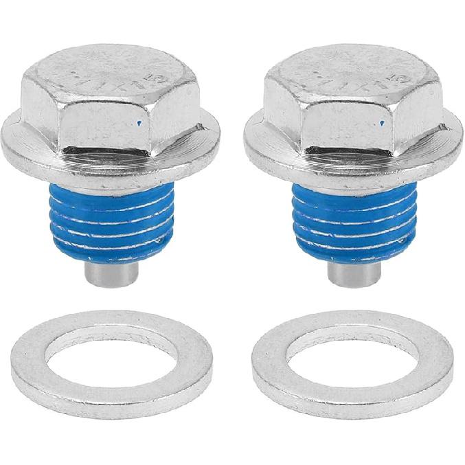 Universal Oil Drain Plug Anti Leakage Oil Pan Drain Bolt Screw Thread Repair Aluminum 2 Set with Gasket Silver Tone Blue Magnetic M16x1.5