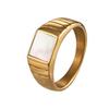 Geometric White Mother-of-Pearl & Black Shell Ring In 14k Gold with Titanium Steel