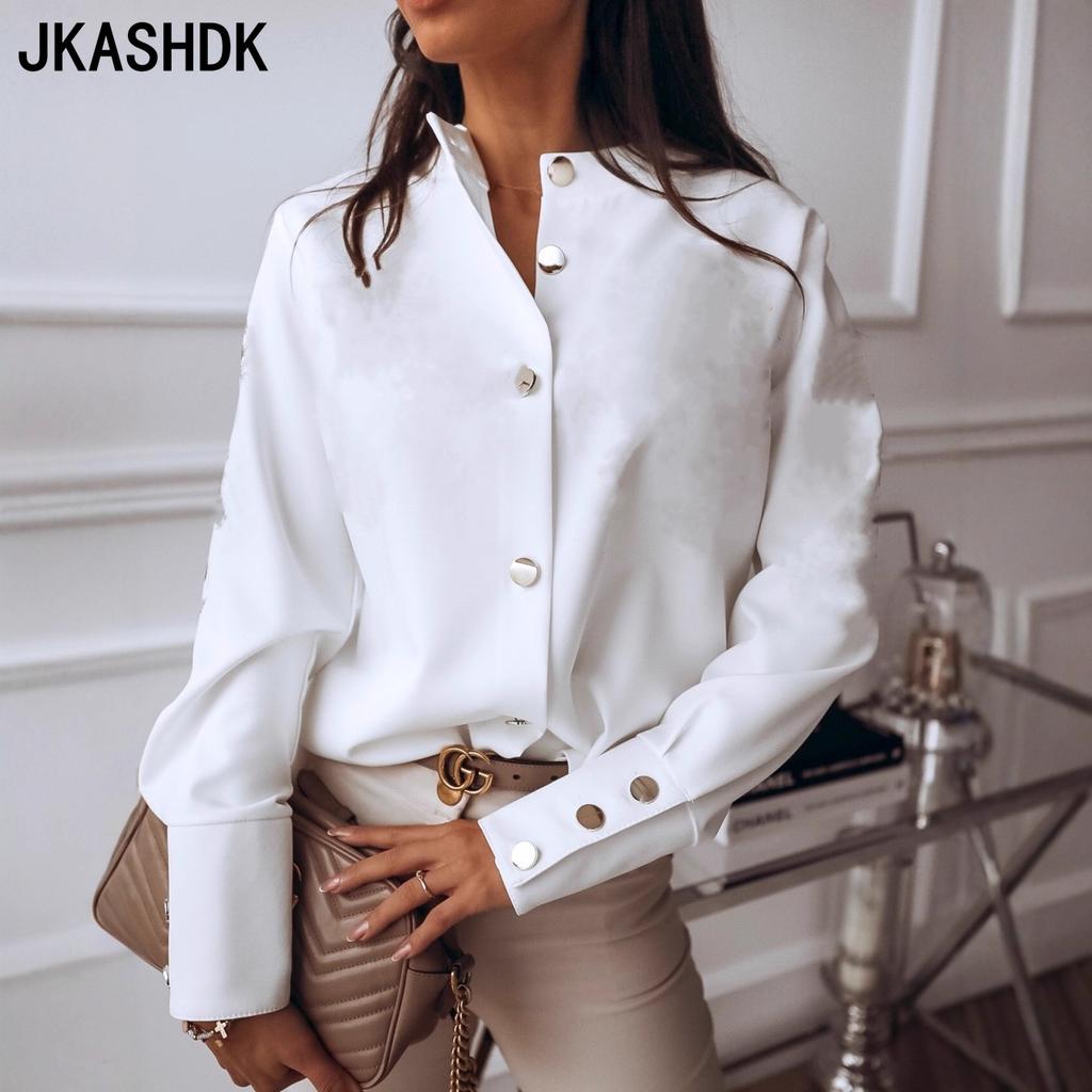 JKASHDK Women's Fashion Casual Spring Autumn Solid Color Print Long Sleeve O-Neck Blouses & Shirts