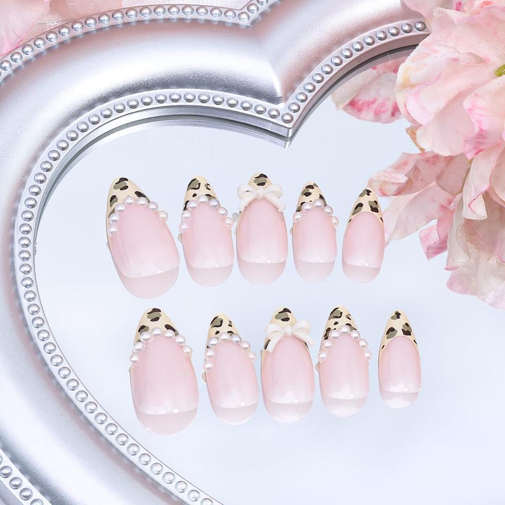 French Bow Nails Kit : 24PCS ,12 different sizes of cute press on nails medium french tip nails , 24 jelly glue, 1 nail file, 1 wooden stick.full range of tools meet all your french cute nails decor supplies wearing needs. It can be worn repeatedly so that you can replace it at any time