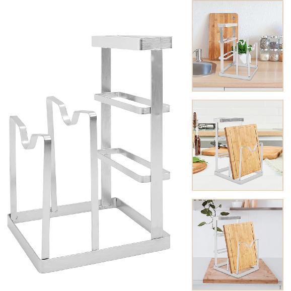 Stainless Steel Pot Lid Stand and Chopping Board Rack for Kitchen Countertop Organization, Storage Block, Space-Saving Cooking Accessory