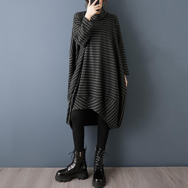 Long Sleeve Oversized Knitted Vintage Stripe New In Dresses for Women Casual Loose Spring Autumn Sweater Dress