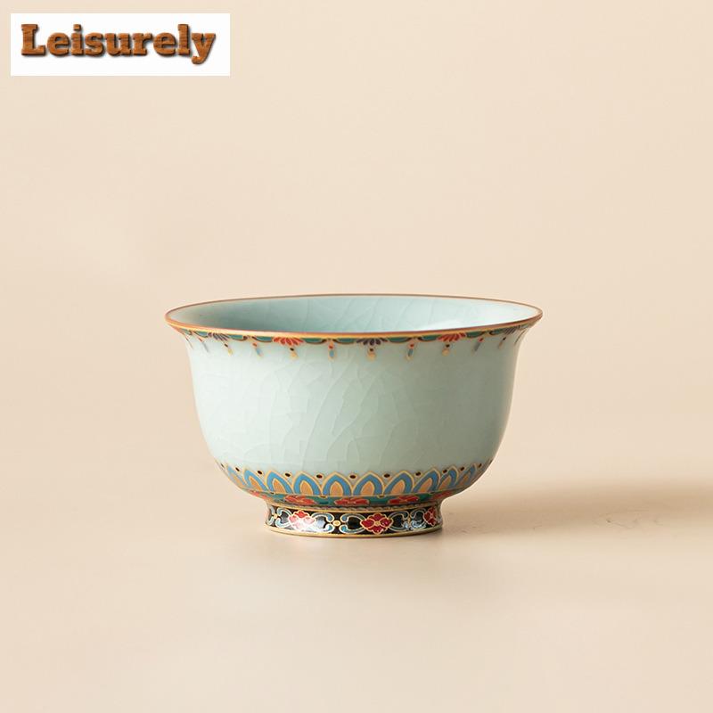 85ml Ru Kiln Precious Flower Pressed Hand Teacup Vintage Tea Bowl Cute Cup Tea-tasting Meditation Cup Jianzhan Master Cups Cafes