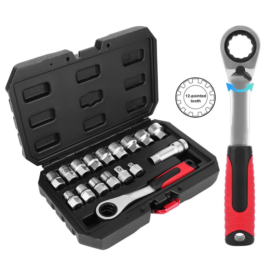 17Pcs Penetrating Ratchet Socket Wear Resist Two-Way Wrench Set Multi-Purpose Piercing Ratchet Sleeve for Home Garage Tool