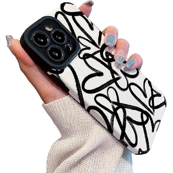 Love Heart Black and White Simple Graffiti Silicone Case Compatible with iPhone Case (iPhone 16 Pro Max)