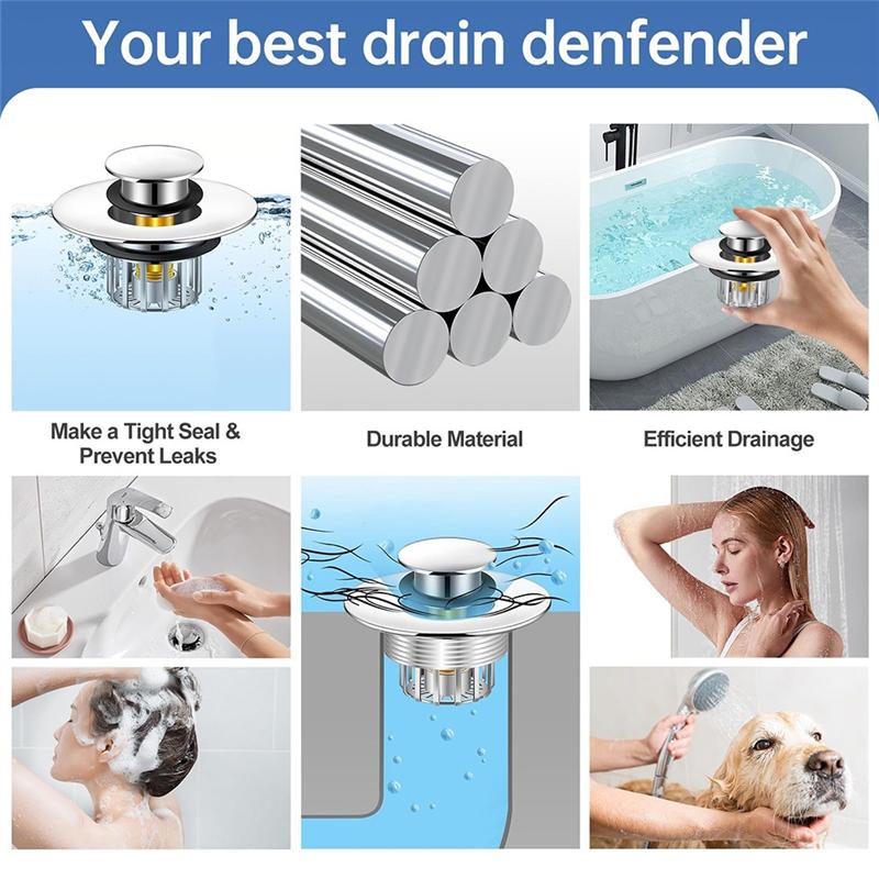 A95I--Up Tub Plug 2-In-1 With Copper Tub For Drain Plug And Hair Catcher, Anti-Clogging Filter Basket For Drain Sink