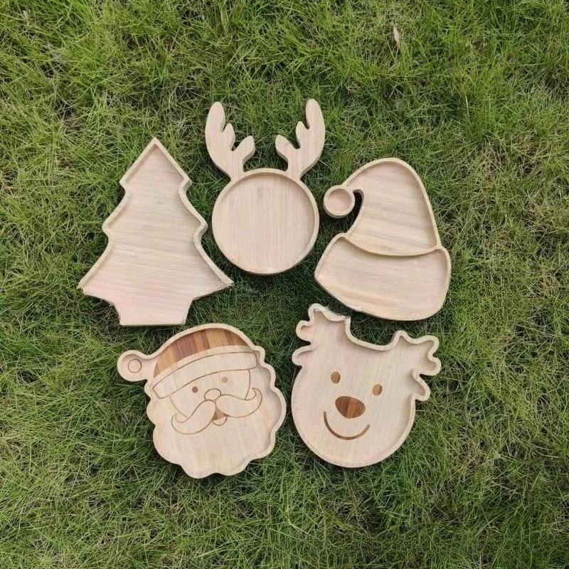 Bamboo Christmas Tray with Easter Design - Elk Christmas Tree Santa Hat Rabbit Pattern Solid Wood Cartoon Serving Tray
