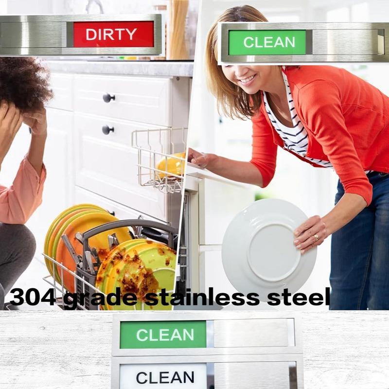 Stainless Steel Dishwasher Magnet Sign - Easy-to-Read Sliding Clean/Dirty Fridge Sticker, Scratch-Resistant Status Indicator