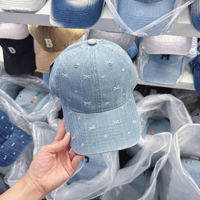 2025 Pure Cotton Korean Bow Soft Top Cute Denim Baseball Cap Women's Big Head Circumference Cap