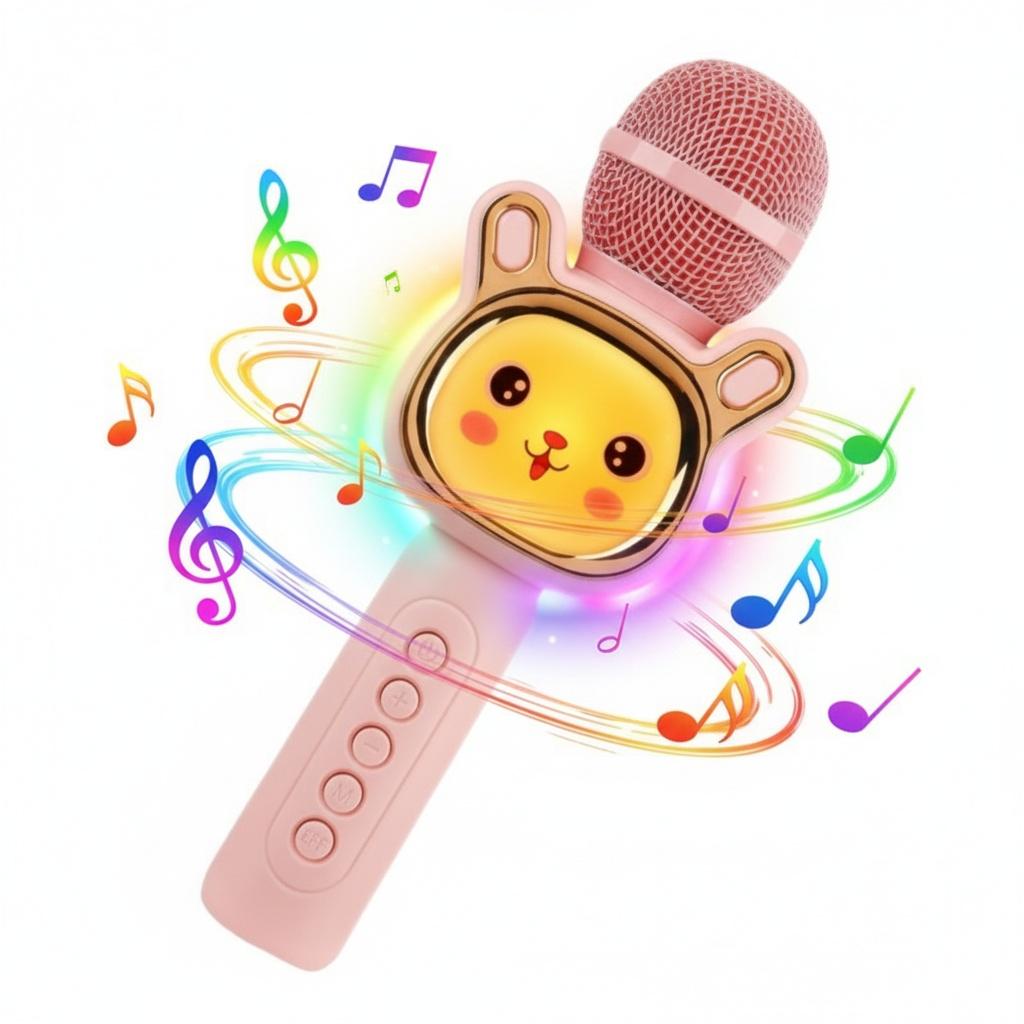 Kid’s Portable KTV Microphone, Bluetooth Wireless, TWS Connection, Colorful LED Lights, Karaoke Microphone Birthday Gift Toy