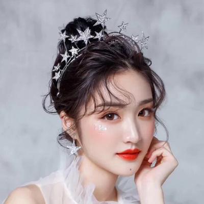 Luxury Sparkly Star Tiaras Wedding Bride Girls Hair Accessories Princess Crown Silvery Rhinestone Headdress