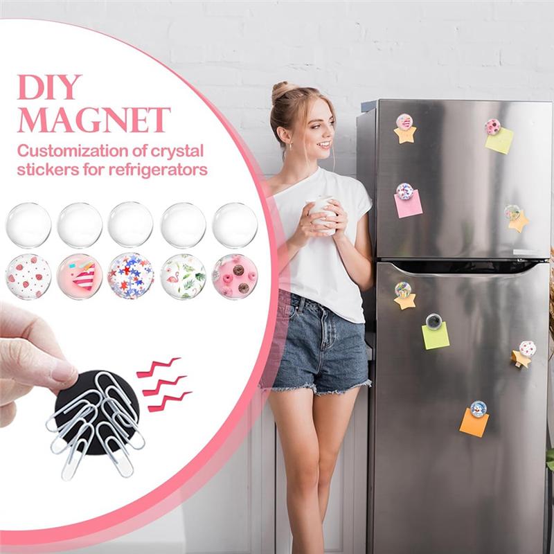 ABWR-124Pcs Craft Magnets Glass W Adhesive Backing And Transparent Clear Glass Cabochons DIY Craft Fridge Magnets Sticker Easy T