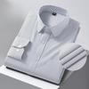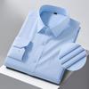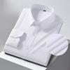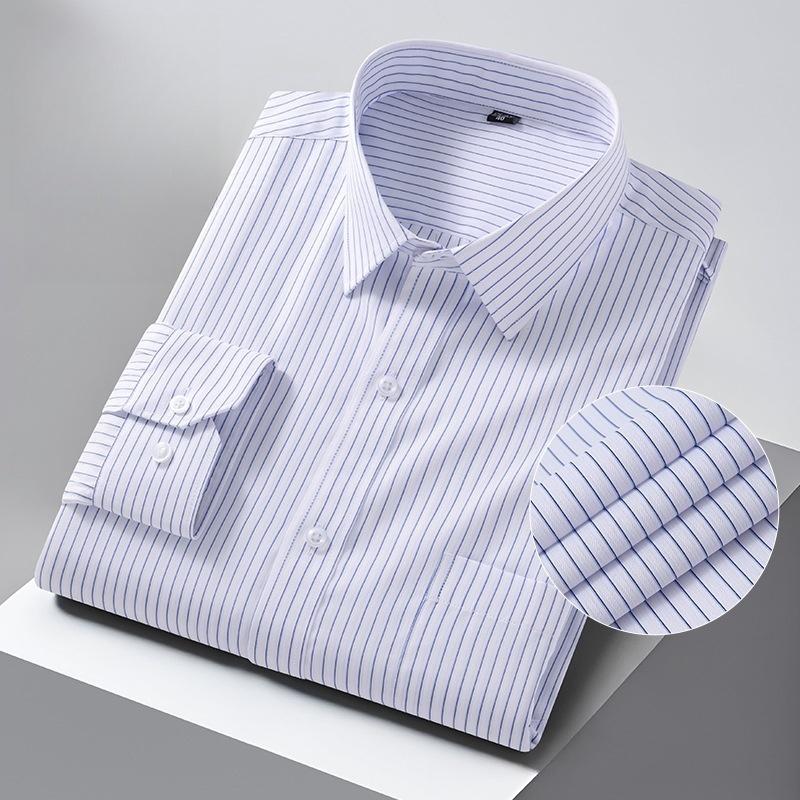 Men Formal Shirt Long Sleeve Office Solid Color Striped Anti-Wrinkle Fashion Business Pocket White Social Shirt Men's Clothing