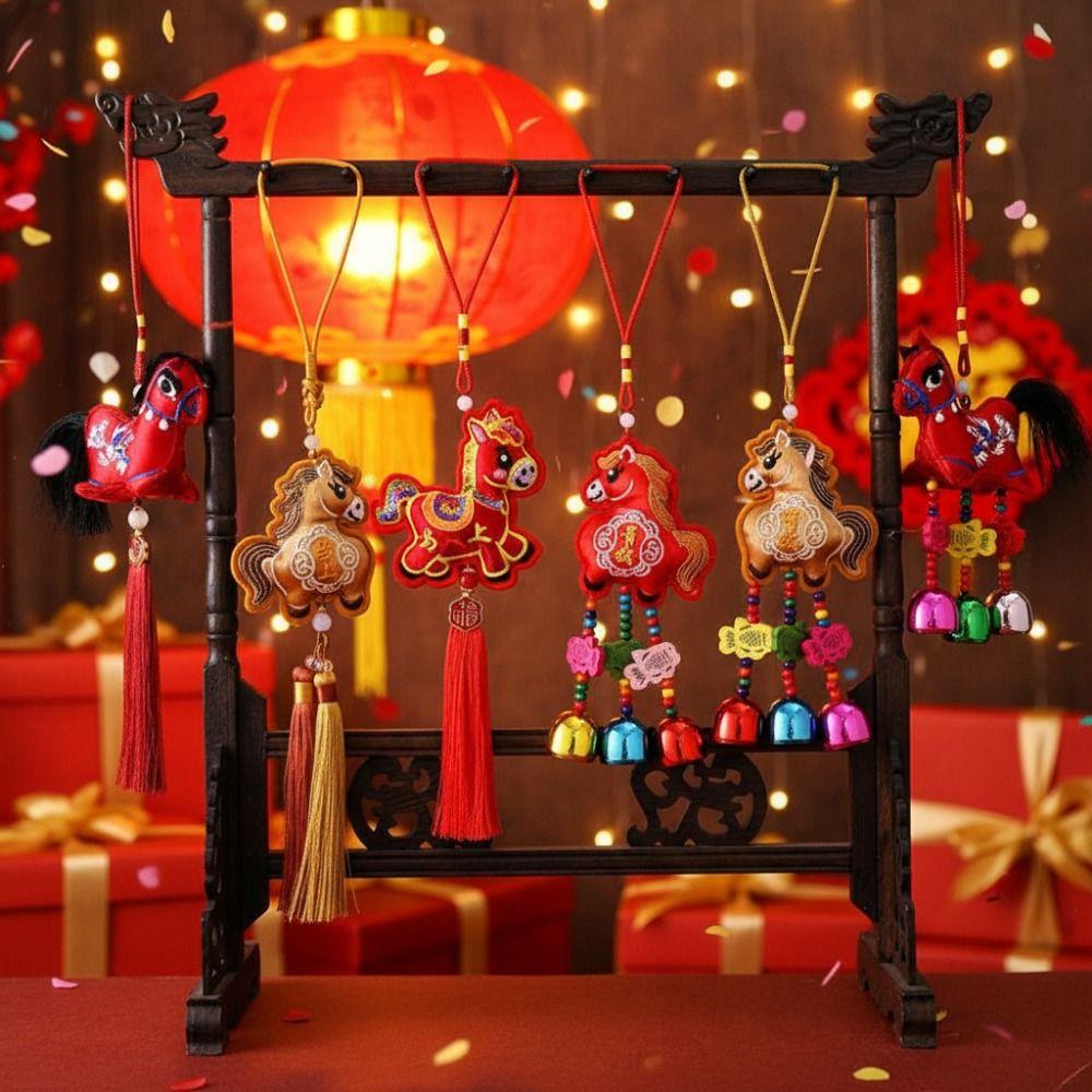 Chinese Red Spring Festival Bell Pendant Horse Wind Chimes Decoration Festive Accessory