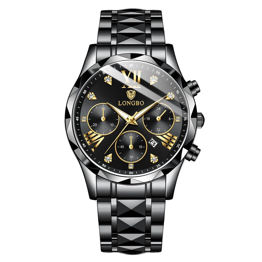 Stylish Men's Chronograph Wristwatch, Men's Business Quartz Movement, Stainless Steel Band, Sapphire Crystal, Waterproof, Luminous Blue, Best Gift