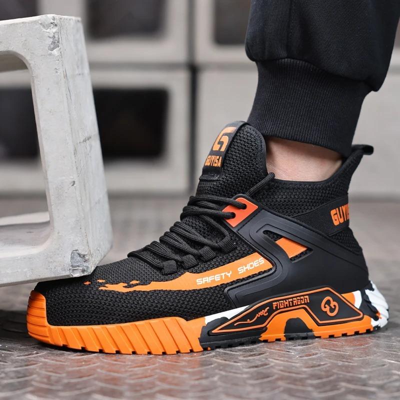 Fashion High Top Safety Shoes Men Steel Toe Work Shoes Men Anti-puncture Safety Shoe Woman Work Safety Boots Man Indestructible Shoes
