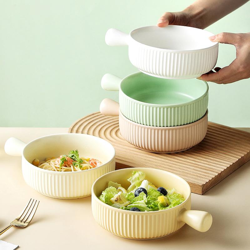Nordic Style Ceramic Hand Handle Bowl Household Baking Bowl Microwave Oven Baked Rice Bowl Instant Noodle Bowl Salad Bowl Breakfast Bowl