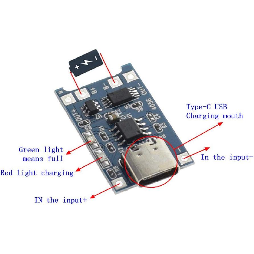 HiLetgo 3pcs TP4056 Type-c USB 5V 1A 18650 Lithium Battery Charger Module Charging Board with Dual Protection Functions