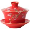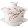 YBK Tech 10oz Large Gaiwan, Porcelain Kung Fu Tea Cup and Saucer with Lid, Chinese Traditional Gaiwan, Sancai Tea Bowl - Embossed Plum Patterns
