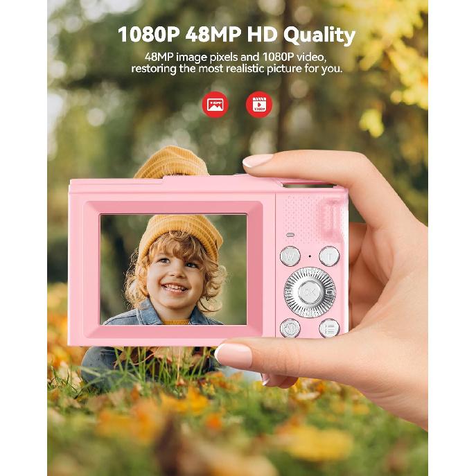 Pink Digital Camera for Kids & Teens - 16X Zoom, Compact, Ages 8-13 - Christmas & Birthday Gift for Girls