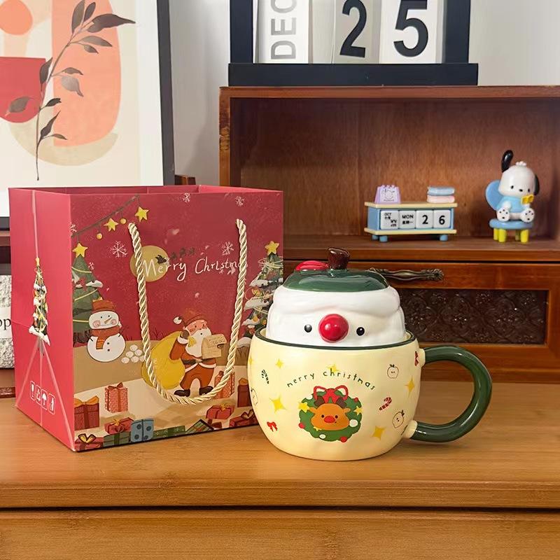 2024 New Apple Christmas Mug with Lid Ceramic Mug Gift Cute High Value Creative Coffee Water Cup
