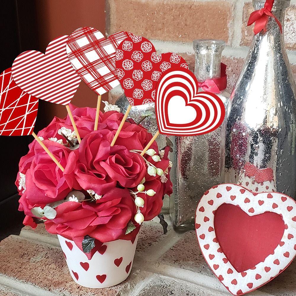 15PCS Heart Shape Valentines Day Decorations Romantic Arrange Props Bouquet Decoration Sticks Confession Multipurpose