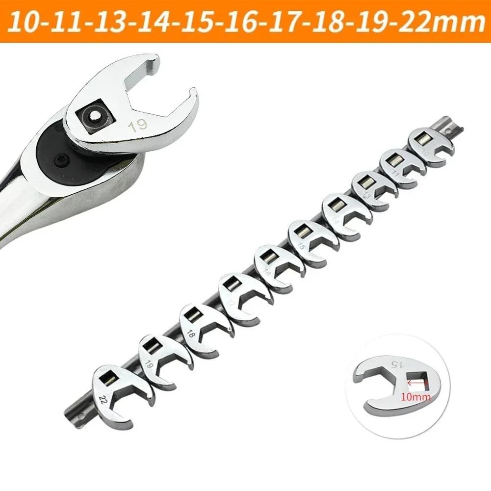 10Pcs 3/8Inch Drive Crowfoot Wrench 10 To 22mm Metric Chrome Plated Spanner For Loosening Or Fastening Nuts And Bolts Hand Tool