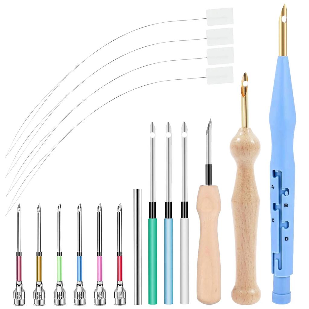17Pcs Punch Needle Embroidery Kits Wooden Yarn Clothes Embroidery Pen Crochet Knitting DIY Craft Stitching Sewing Tools