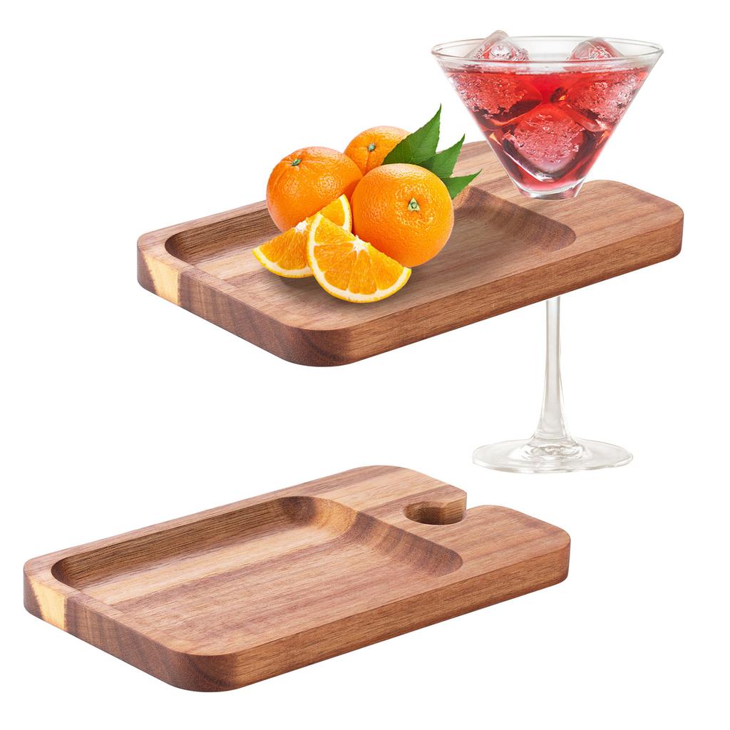 2/6Pcs Wine Appetizer Plates Wood Serving Platter with Glass Holder Fruit Snacks Sushi Food Wood Serving Plates Kitchen Tools