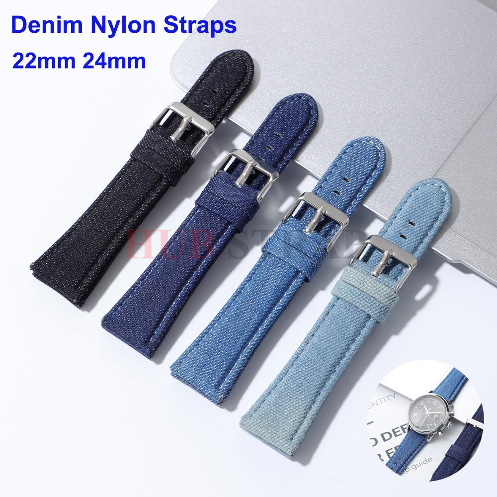 Denim Nylon Straps 22mm 24mm for Omega for Seiko Watches for Men Women Vintage Soft Fabric Nylon Watchbands Watch Accessories