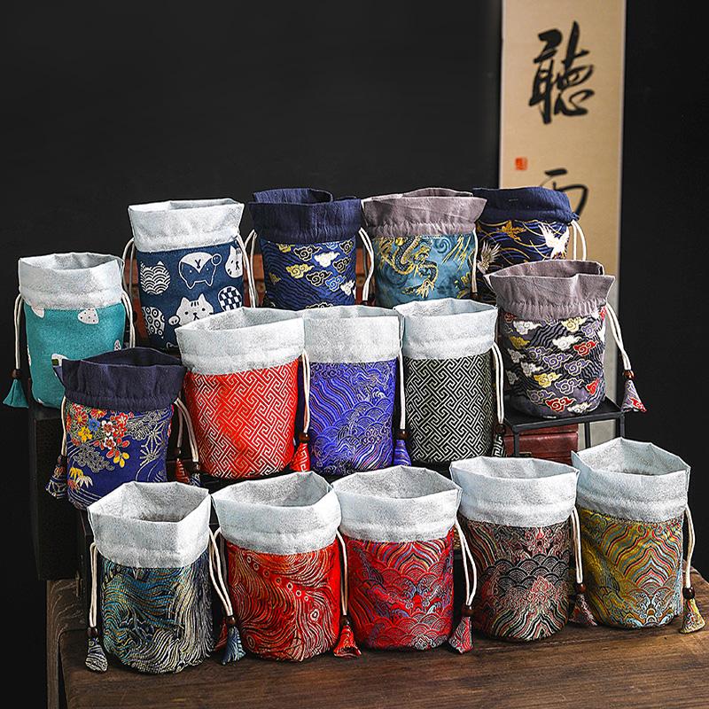 Tea Cup Storage Hand-held Cloth Bag Owner's Single Cup Silk Storage Bags Cotton Drawstring Protective Bag with Added Drawstring
