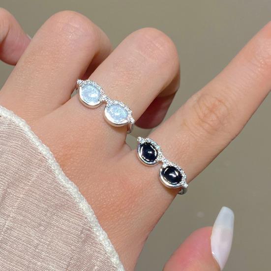 This adjustable ring features a unique mini glasses design, combining cool and cute styles that stand out as a charming accessory on your fingertips. Available in rhinestone-encrusted and black chip styles, it effortlessly complements various looks—from casual and light retro to sweet and edgy.