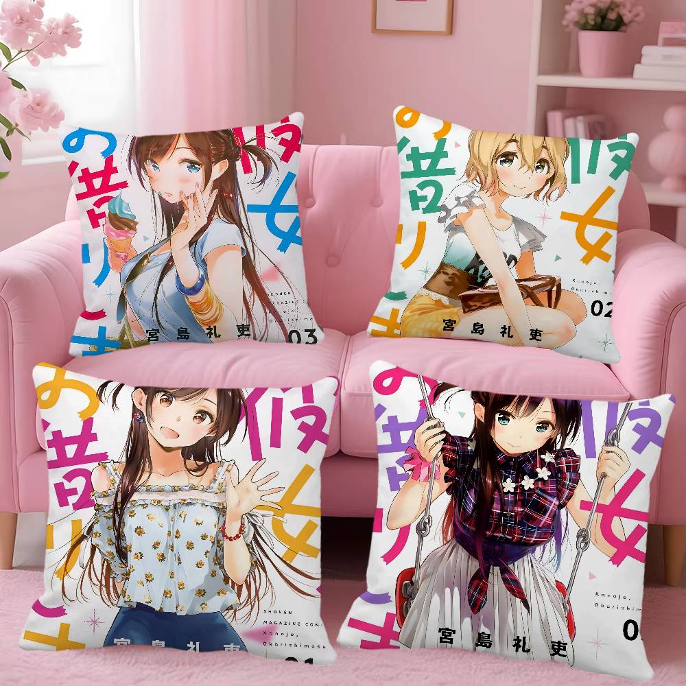 Kanojo Okarishimasu Anime Pillow Case Square Pillow Bedroom Sofa Leisure Comfort Cushion Car Home Decoration