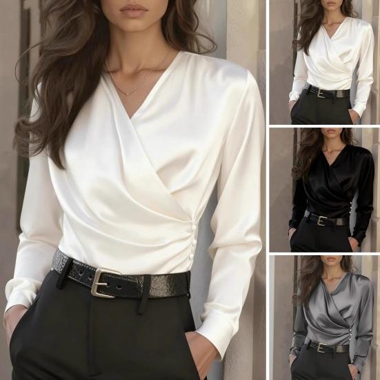 Elegant V-Neckline for Neckline Enhancement: The shirts temperamental V-neck design is carefully cut to visually elongate the neck and slim the face. With a balanced depth that maintains professionalism while adding subtle sophistication, this neckline complements accessories such as necklaces or scarves perfectly. It creates a refined appearance that elevates your overall outfit with understated grace.