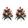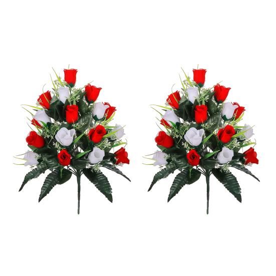 This artificial rose bouquet features high-quality simulated materials that offer a realistic and natural appearance without the need for watering or maintenance. Designed for long-lasting use, the flowers and leaves retain their vibrant shape and color, making them ideal for both indoor and outdoor display. The bouquet combines bright red and pure white roses, symbolizing respect and remembrance with a solemn yet warm tone, perfect for cemetery decoration.
