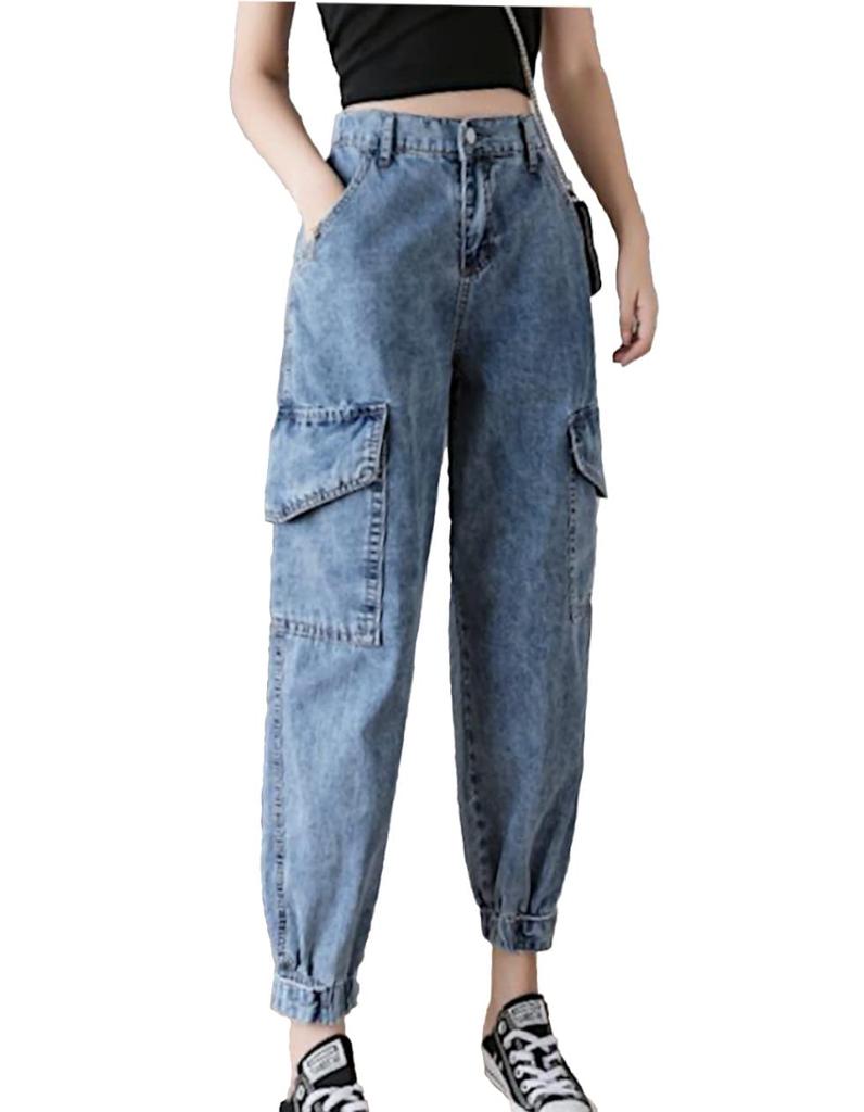These denim cargo pants are slightly loose around the thighs and have a skinny silhouette towards the hem, giving them a sporty, mature feminine look. The back waist is elastic, so you can adjust them to your size for a comfortable fit. The hem has an adjuster for a sleek look. These pants feature a loose, wide silhouette. They are easy to coordinate with a variety of trendy outfits, including streetwear and monochrome. They are versatile enough for everyday wear, camping, and various outdoor activities. Size guide: M: Waist 72cm, Hip 100cm, Thigh 56cm, Length 88cm; L: Waist 76cm, Hip 104cm, Thigh 58cm, Length 89cm; XL: Waist 80cm, Hip 108cm, Thigh 60cm, Length 90cm