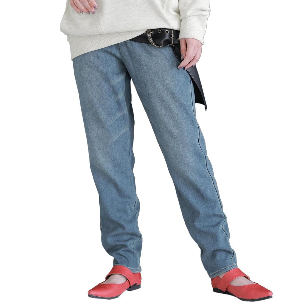 A clean silhouette with an original pattern! These warm denim pants are perfect for the cold season. The entire inside is made of brushed velour material, making them soft and warm to wear. We've paid particular attention to creating a clean silhouette despite the thick material.