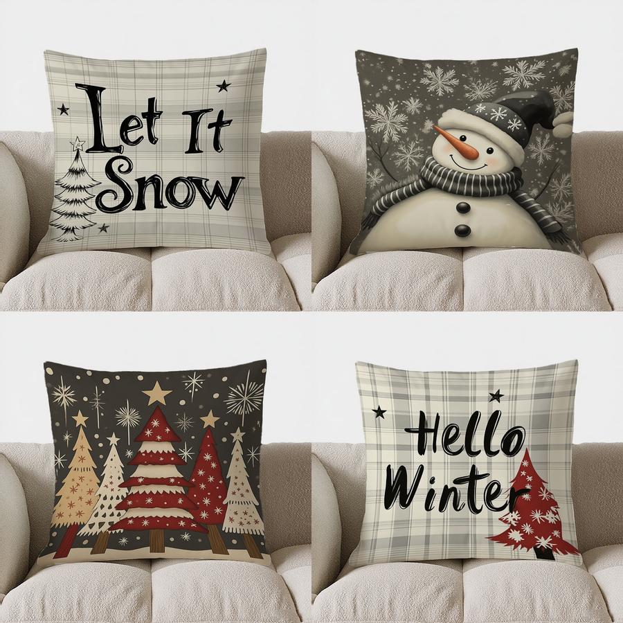 Home Decor Let It Snow Christmas Starry Tree Throw Pillow Pattern Cushion Cover Suitable For Sofa Bedroom Car Pillow Cover