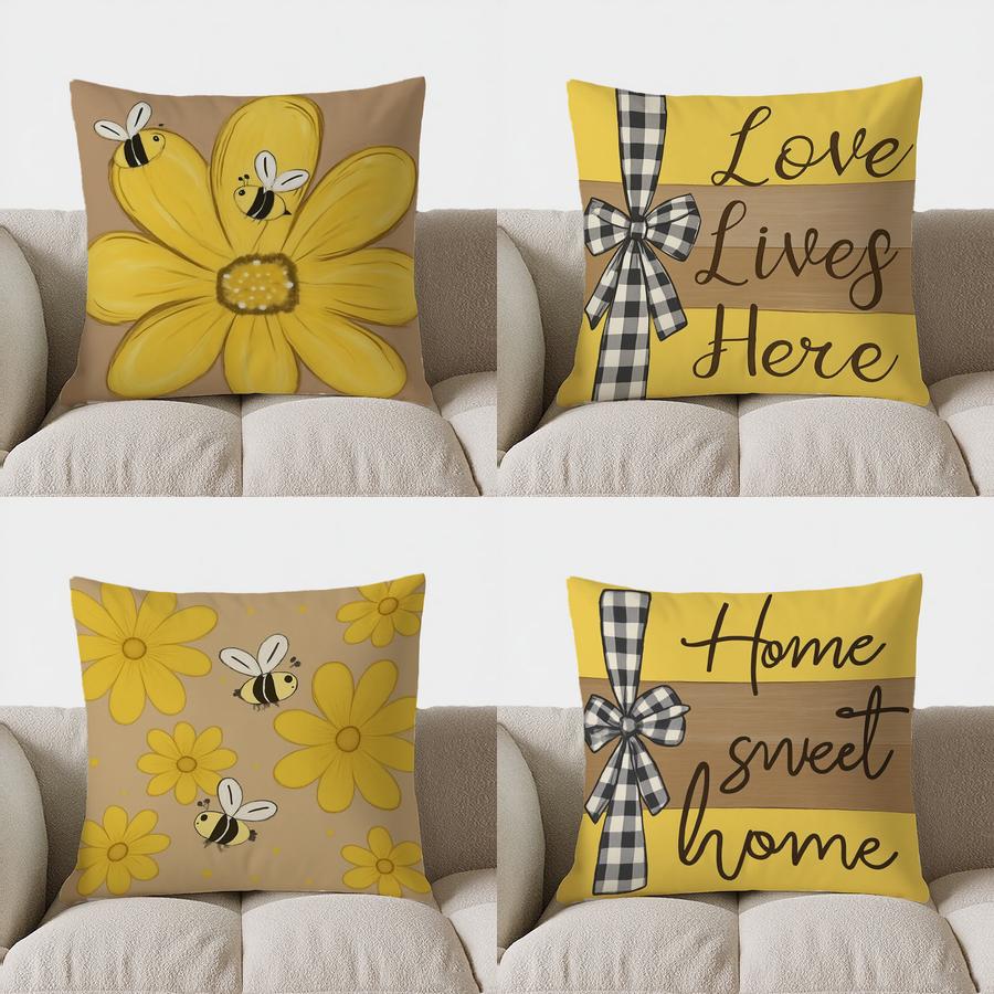 Home Decor Cute Bee And Flower Design Pillow Cover Pattern Cushion Cover Suitable For Sofa Bedroom Car Pillow Cover