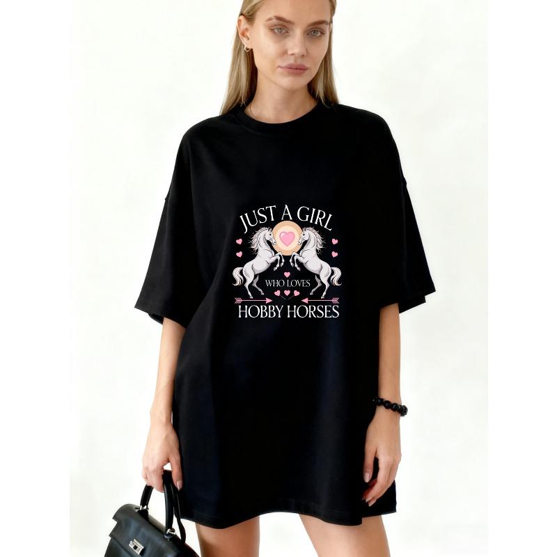 Oversized T Shirt Black Just A Girl Who Loves Hobby Horses With Horse And Heart Design For Casual Wear And Everyday Outfits