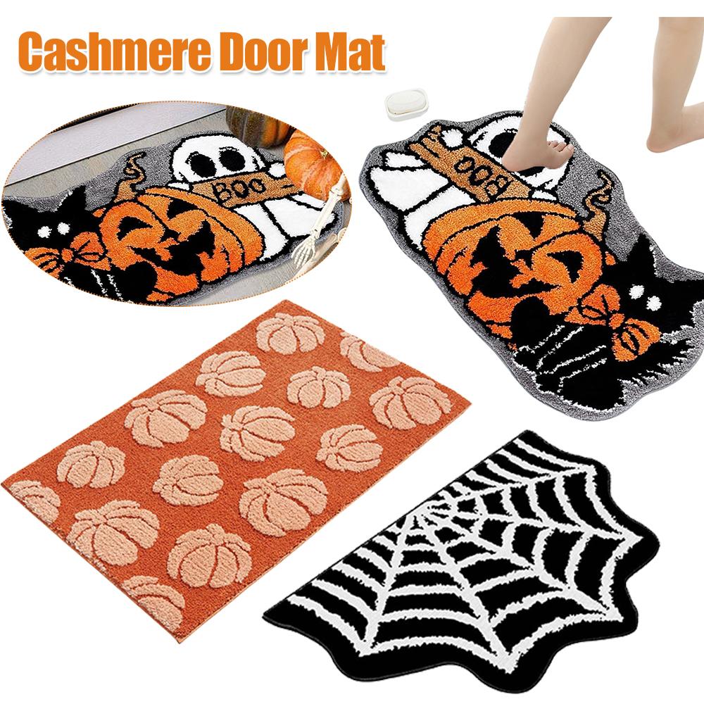 Halloween Ghost Pumpkin Cashmere Door Mat Non-slip Bathroom Mat Absorbent Microfiber Bathroom Rugs Kitchen Home Decoration