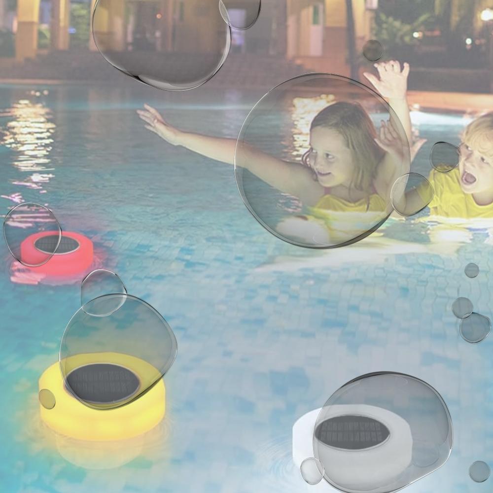 Solar Chlorine Tablet Floater with Colorful Light Chlorine Floating Water Cleaner IP68 Waterproof for Purify Swimming Pool Water