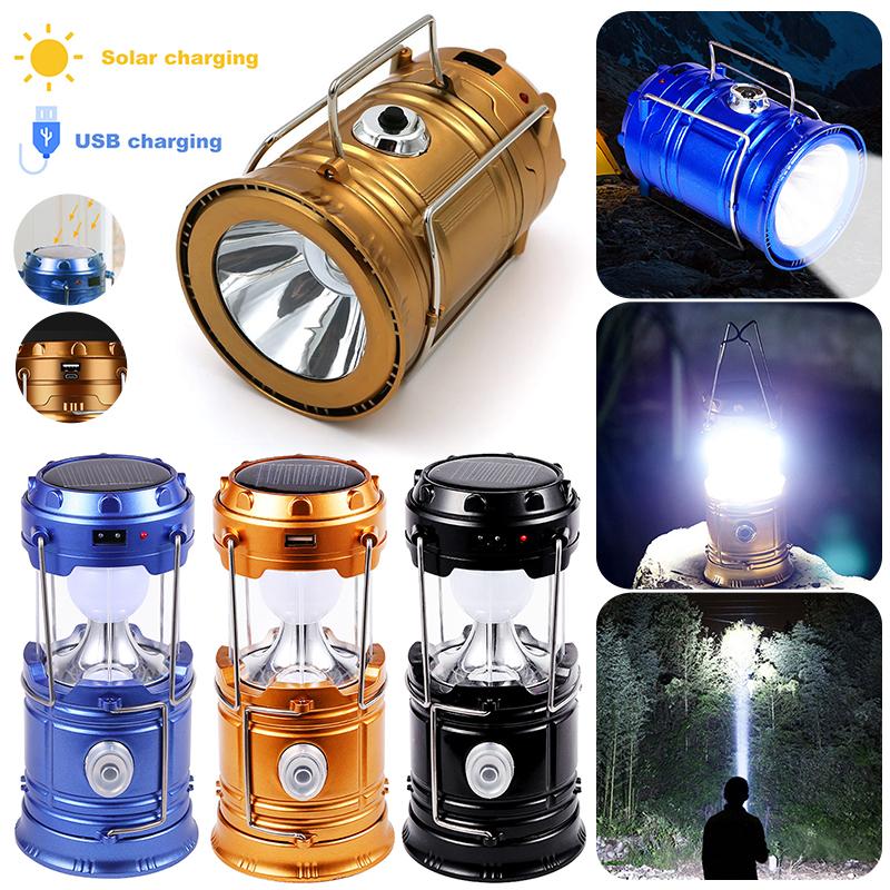 Solar Portable Lantern LED Flashlight Telescopic Torch Outdoor Camping Light Tent Lamp USB Rechargeable Emergency Work Light