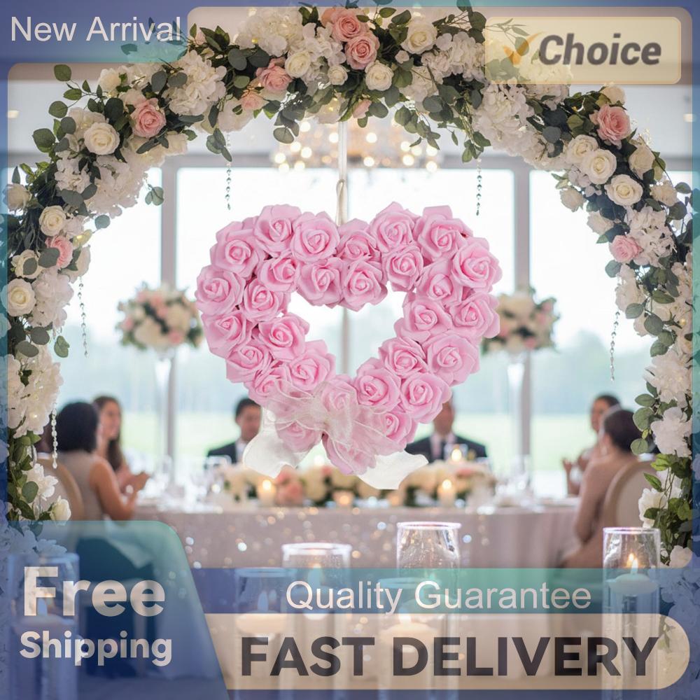 Artificial Rose Wreath Flower Wreaths Heart Love Garland Wall Hanging Sign for Front Door Wedding Party Decorations