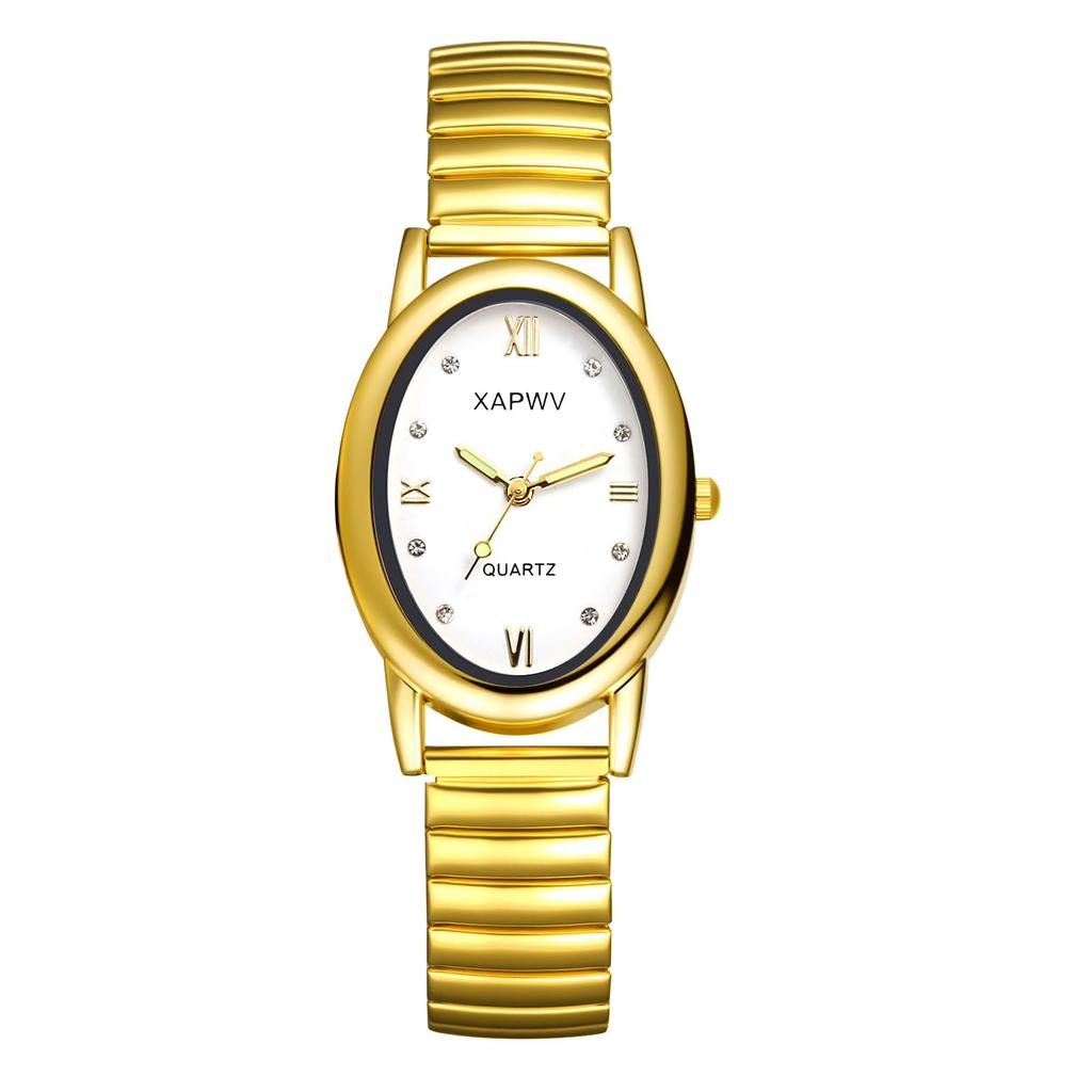 Women's Gold Watch with Accordion Strap, Waterproof: Stylish Analog Display, One Size Fits Most, Stainless Steel Strap, Quartz Watch, Fashion