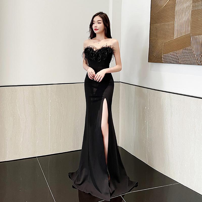 2025 Sexy Backless Strapless Floor-Length Slit Evening Gown for Foot Massage Technicians