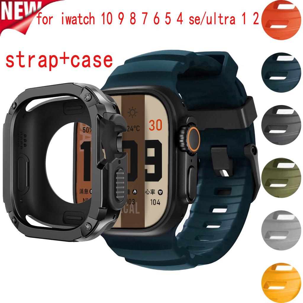 Band+Case for Apple Watch Ultra 2 49mm 44 45 46mm Sport Silicone Strap TPU+PC Cover iWatch Series10/8/7/SE/6/5 Protector Bumper